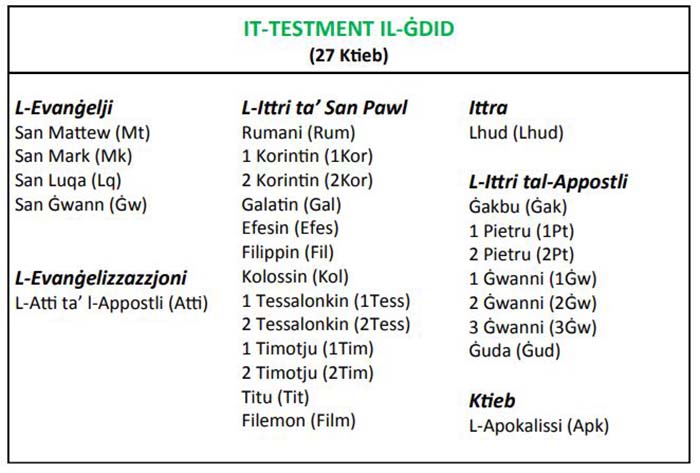27 ktieb fit-Testment il-Ġdid