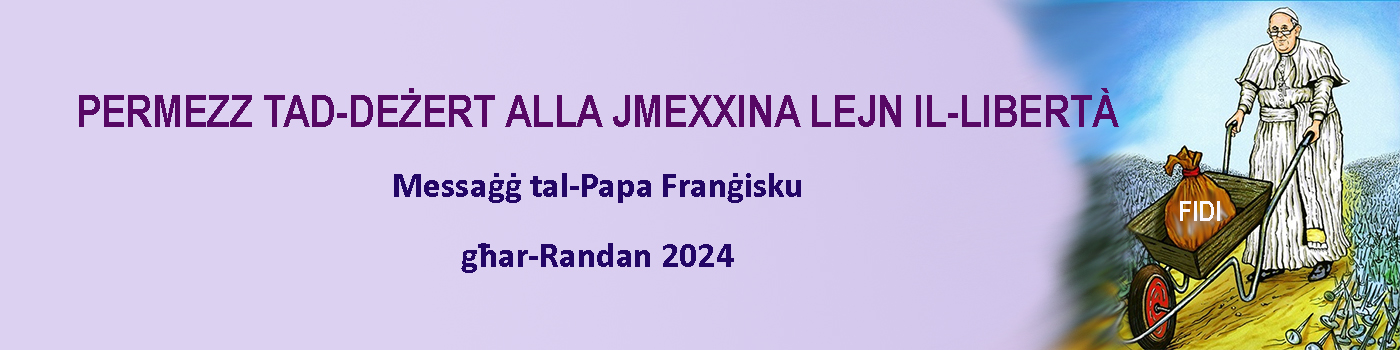 Fil-vjaġġ tiegħi f’Lampedusa, kontra l-globalizzazzjoni tal-indifferenza ppreżentajt żewġ mistoqsijiet, li dejjem qed isiru iżjed attwali: “Fejn int?” (Ġen 3:9) u “Fejn hu ħuk?” (Ġen 4:9). Il-mixja tar-Randan tkun konkreta jekk, aħna u nerġgħu nisimgħuhom, nistqarru li llum ukoll ninsabu taħt il-ħakma tal-Fargħun. Hija ħakma li tifnina u tagħmilna insensibbli. Huwa mudell ta’ tkabbir li jifridna bejnietna u jisirqilna l-futur. L-art, l-arja u l-ilma huma mniġġsa biha, imma anki l-erwieħ jitniġġsu biha. Fil-fatt, imqar jekk bil-Magħmudija l-ħelsien tagħna beda, tibqa’ fina nostalġija inspjegabbli għall-jasar. Hi bħal ġibda lejn iċ-ċertezza tal-ħwejjeġ li diġà rajna, bi ħsara għal-libertà.
